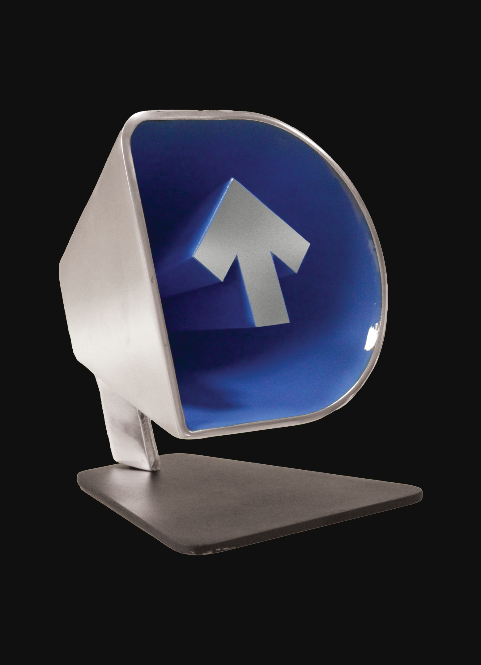 The DesignUp Trophy embodies the Futures Challenge, celebrating bold ideas and design-driven impact. Shaped like a megaphone with a cursor at its core, it symbolizes design as the heart of every message. Crafted in aluminum, it fuses Moradabad’s handcraft, industrial precision, and 3D printing—blending tradition with modern technology.