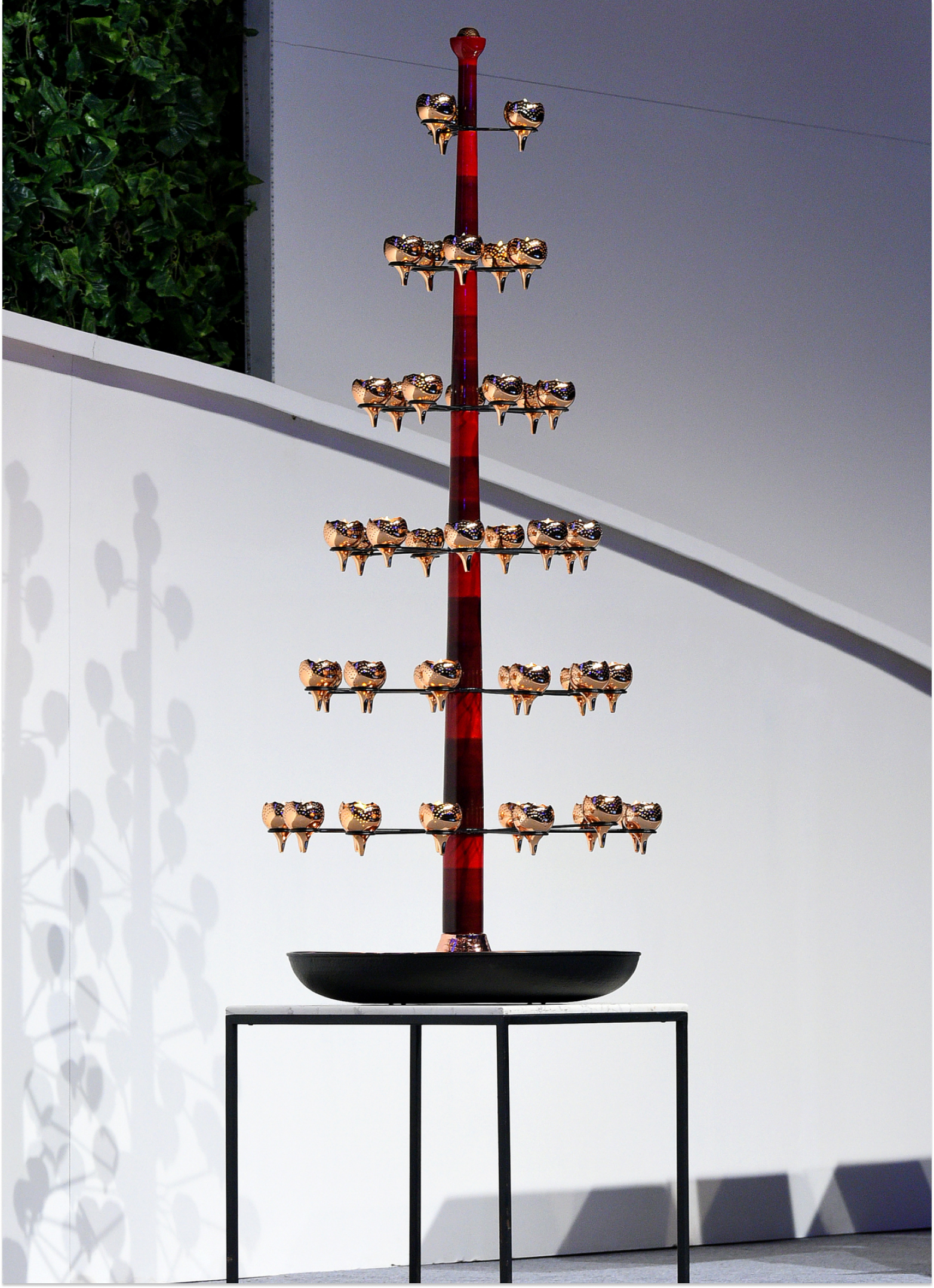 Standing tall with its blend of two distinct handicraft styles, the Nakshatraa brings the aura of a constellation into your home. 32 impeccable Rose-Gold flowers light up with candles inside them, illuminating your house and spirit with its beautiful glow.